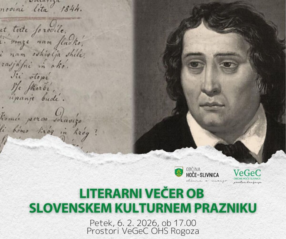 V spomin na Prešerna bomo v prostorih centra VeGeC Rogoza organizirali literarni večer na katerem bomo prisluhnili poeziji Franceta Prešerna in drugih slovenskih pesnikov.