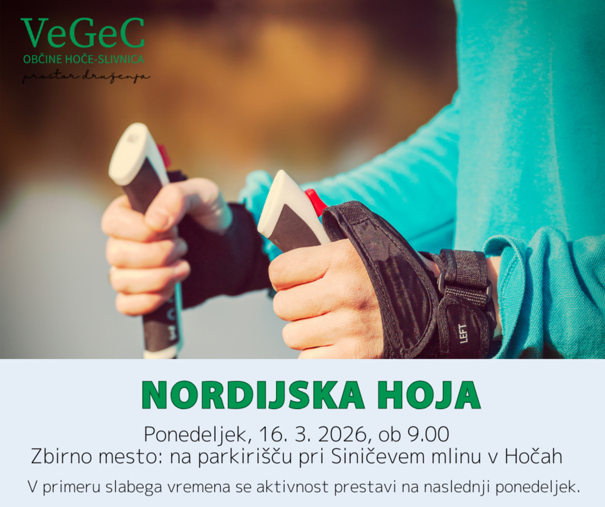 Vabimo vas, da se nam pridružite pri nordijski hoji v ponedeljek, 16.3 2026, ob 9. uri.
