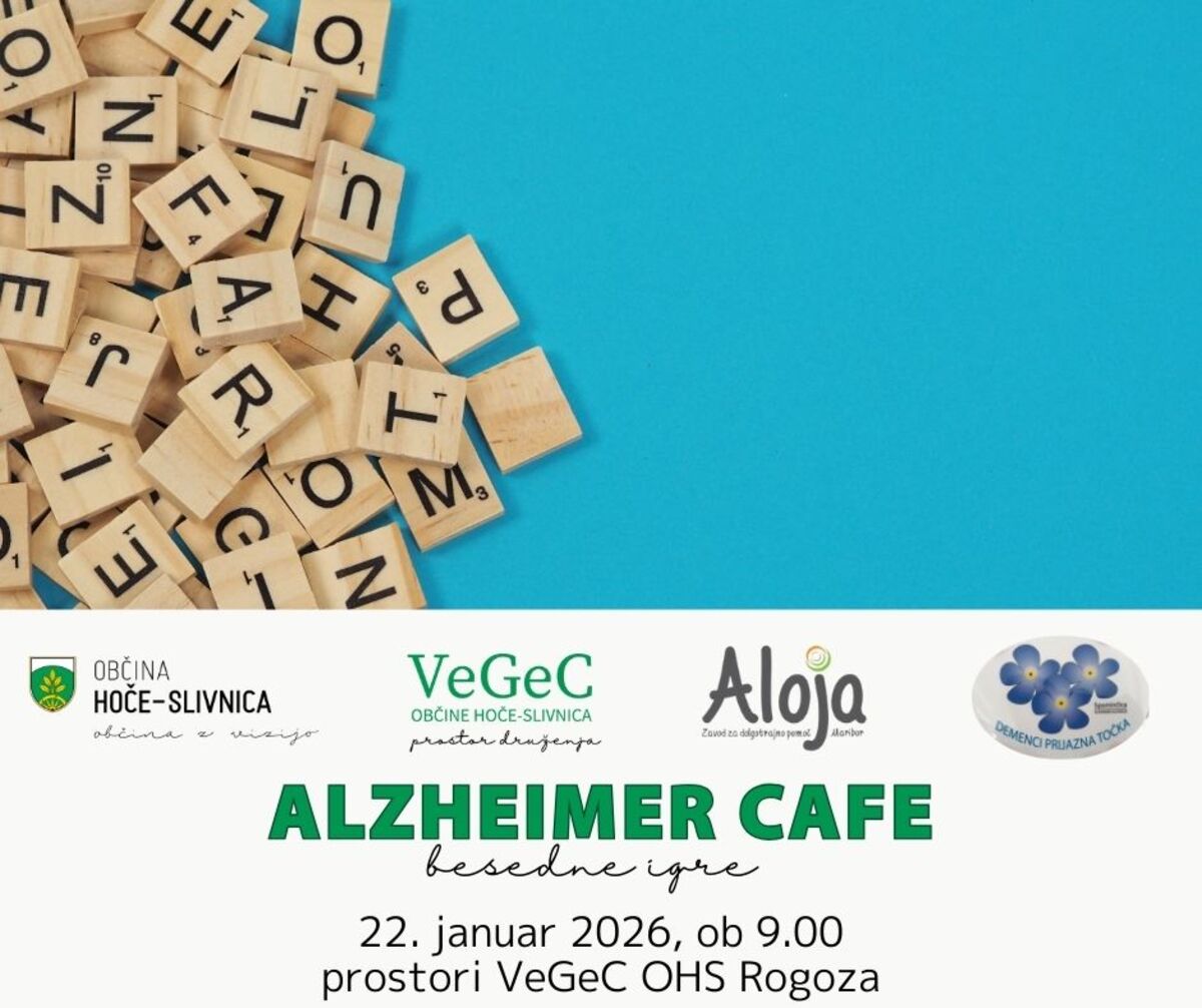 V četrtek, 22. 1.2026, ob 9.00 vas vabimo v prostore VeGeC OHS Rogoza na Alzheimer cafe. V sodelovanjuu z Zavodom za dolgotrajno pomoč- Aloja bo mag. gerontologije Lidija Breznik udeležencem predstavila raznolike besedne igre s katerimi krepimo možgane in spregovorila o različnih napotkih ter podpori pri demenci.