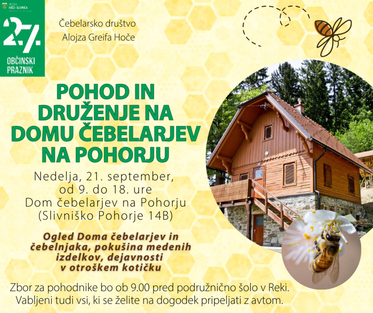 Vljudno vabljeni na Dan odprtih vrat Doma čebelarjev na Pohorju (Slivniško Pohorje 14B), ki bo v nedeljo, 21. septembra, med 9.00 in 18.00.