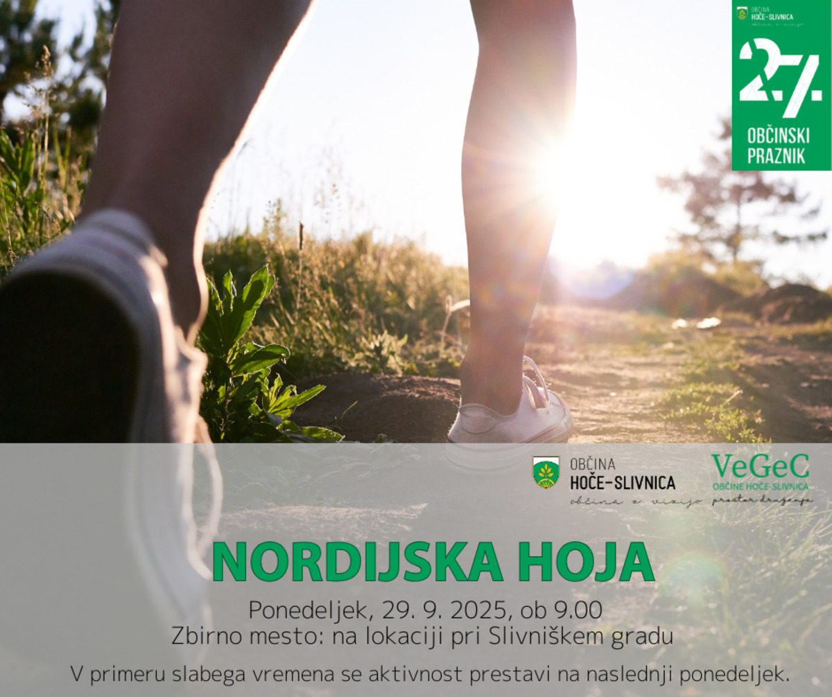 Vabimo vas, da se nam pridružite pri nordijski hoji v ponedeljek, 29. septembra 2025, ob 9. uri.