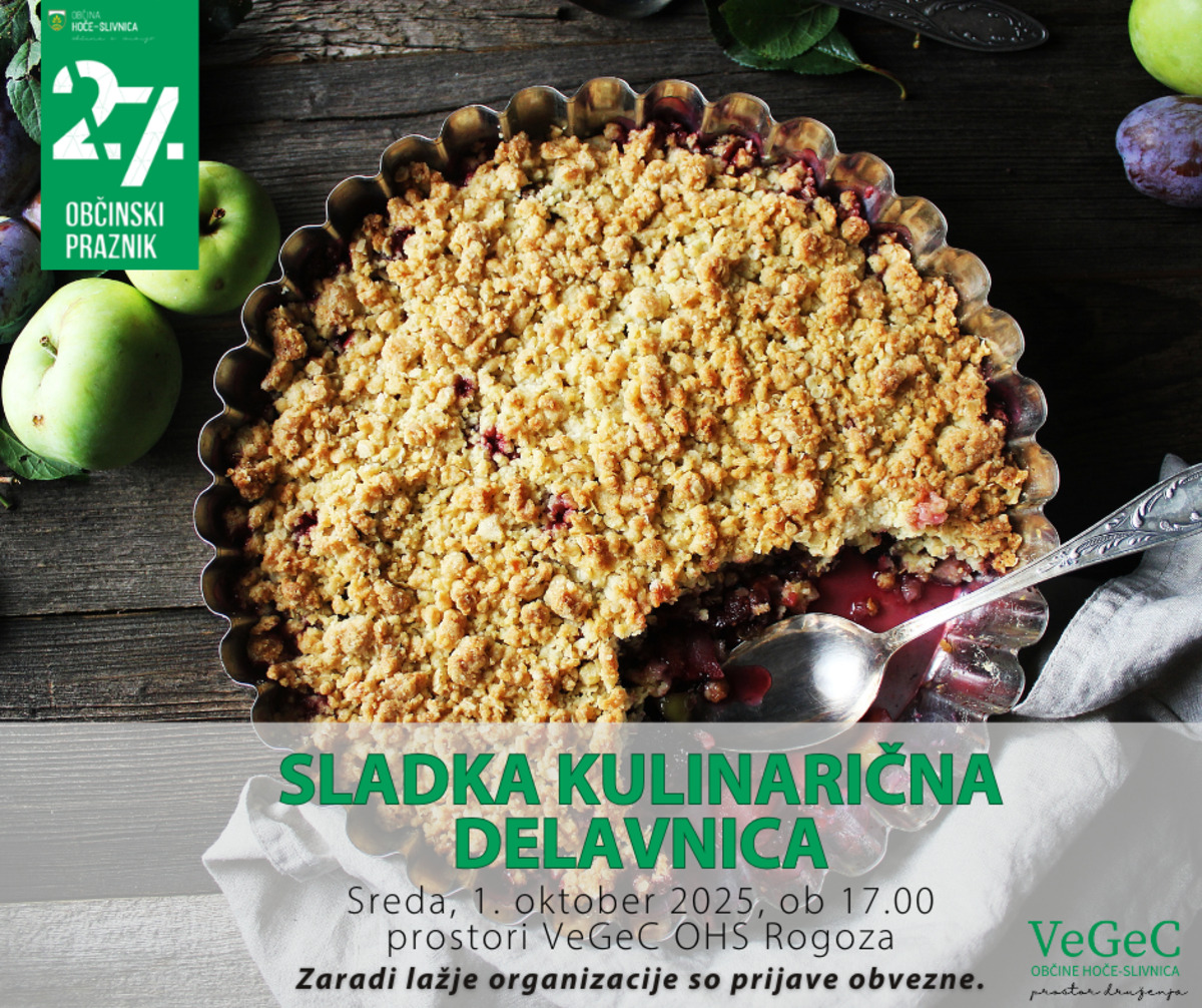 Vabljeni na sladko kulinarično delavnico v sredo, 1. oktobra ob 17. uri v prostorih VeGeC Rogoza.