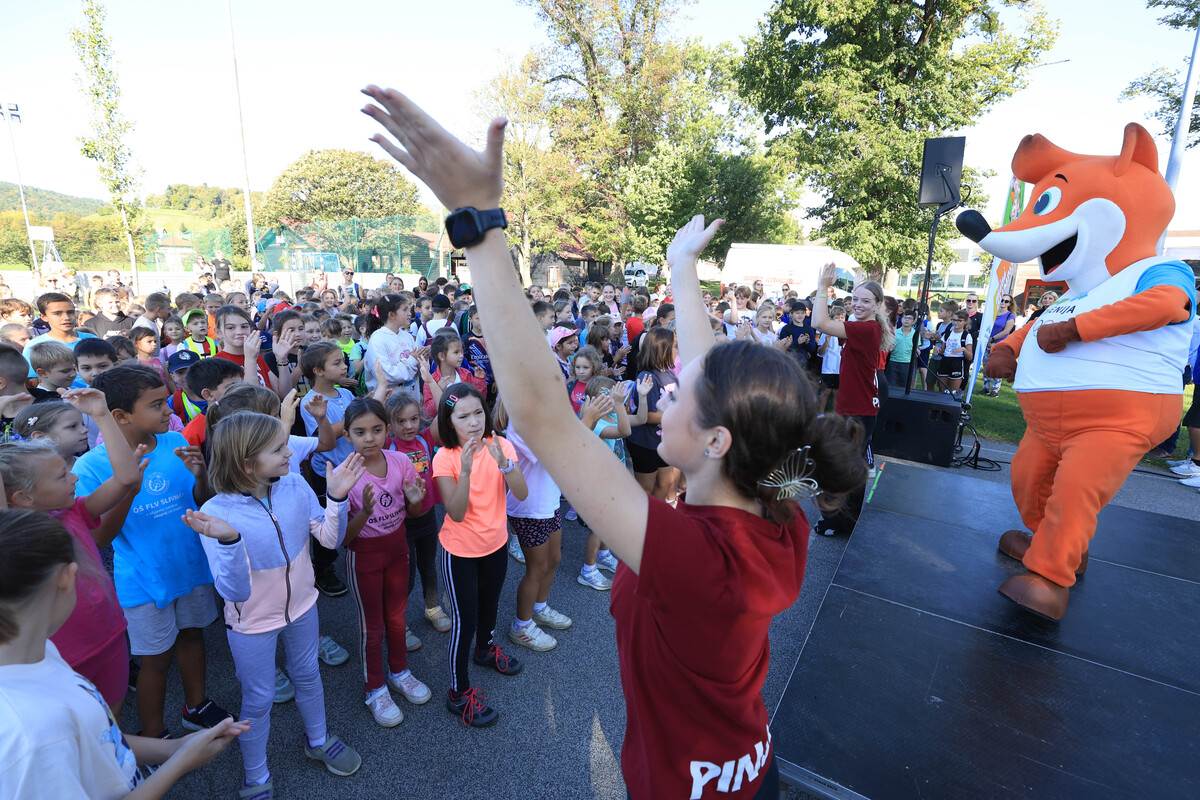 Po olimpijskem protokolu – himni, bakli in zaprisegi športnikov – je sledilo ogrevanje, ki ga je izvedla plesna šola Pingi. Z ritmom in plesnimi gibi so otroke pripravili na športne izzive dneva in poskrbeli za pravo energijsko eksplozijo.