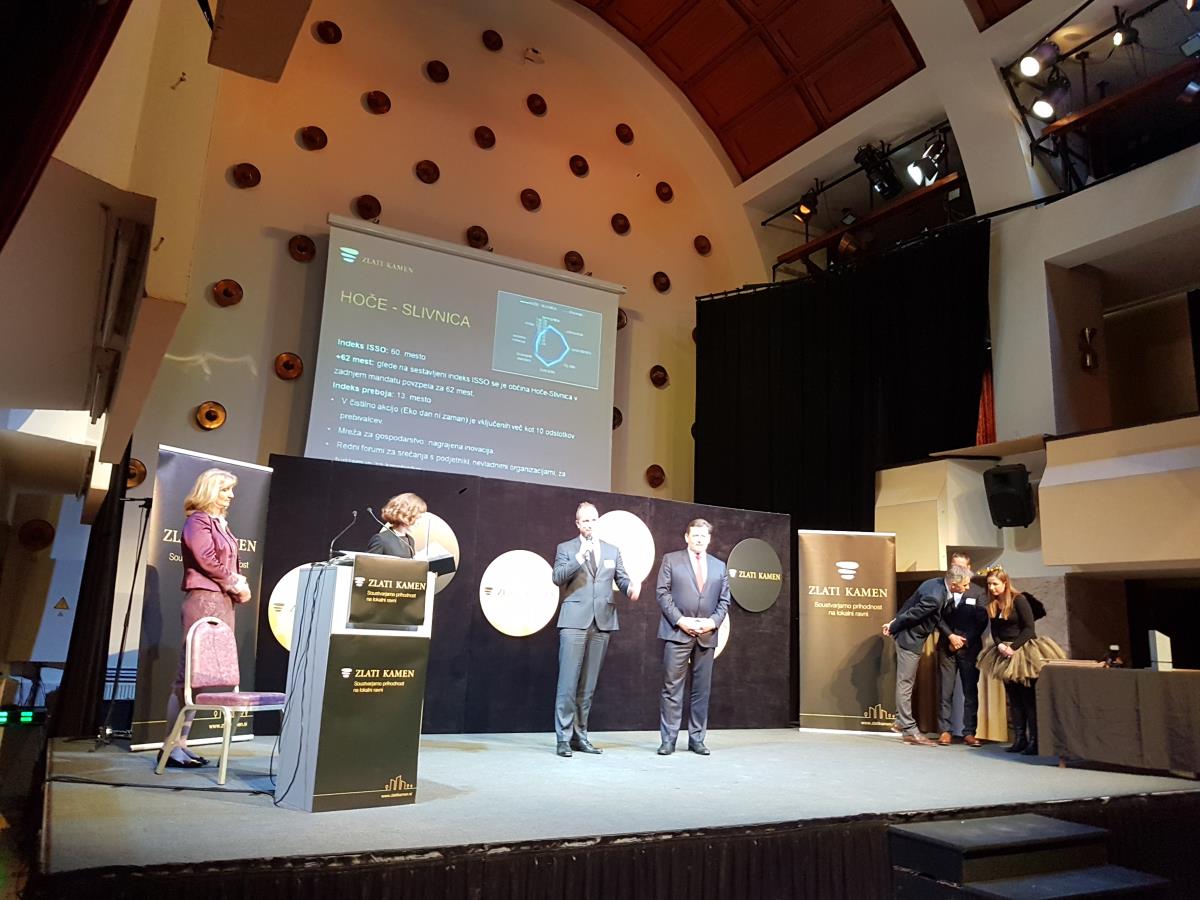 Občina Hoče-Slivnica se je letos uvrstila med 12 nominirank za nagrado Zlati kamen, ki se podeljuje najbolj prodornim občinami v Sloveniji. V okviru slovenske ISSO raziskave projekta Zlati kamen, ki že sedmo leto identificira razvojno najbolj prodorne občine in vsako leto premelje okoli 160.000 podatkov, je bilo dvanajst finalistk. V slovensko ISSO raziskavo je vključenih več kot petdeset ključnih indikatorjev razvojne uspešnosti, ki se jih primerja skozi zadnja štiri leta. V analizo so avtomatično vključene vse slovenske občine, zato podatki predstavljajo dober pregled slovenskega okolja na ravni lokalne samouprave.