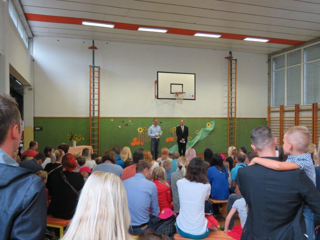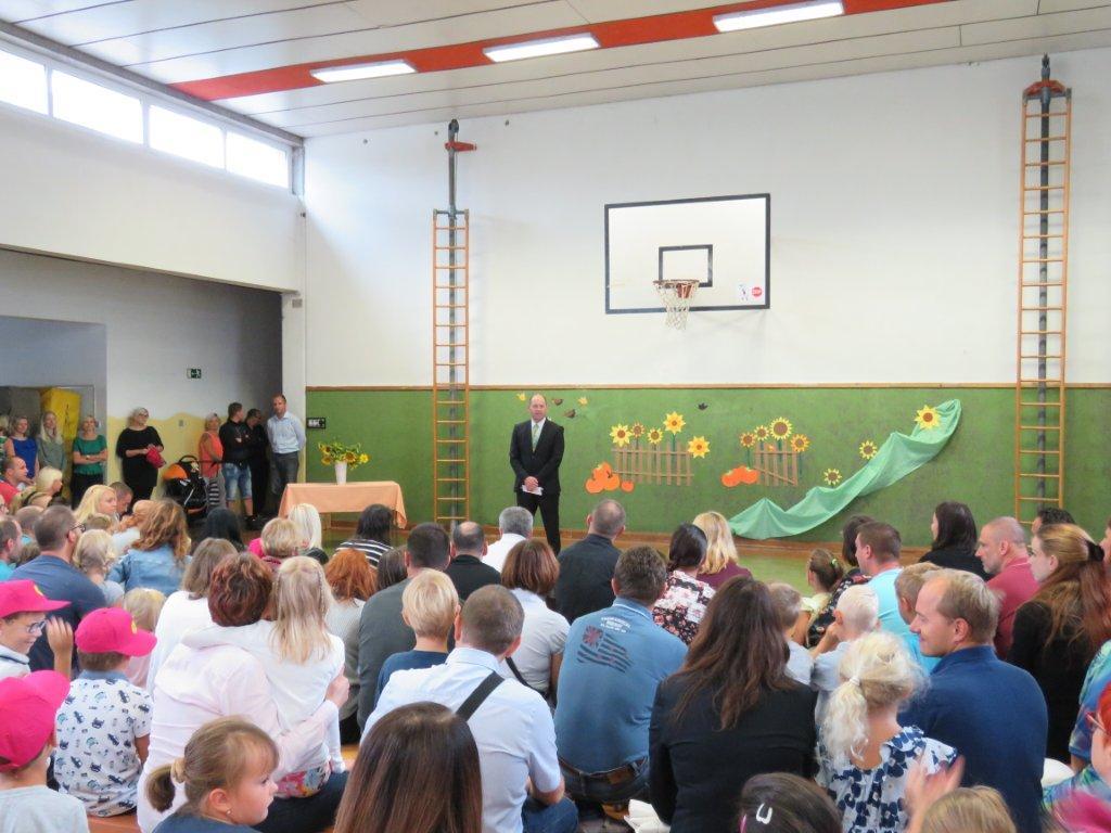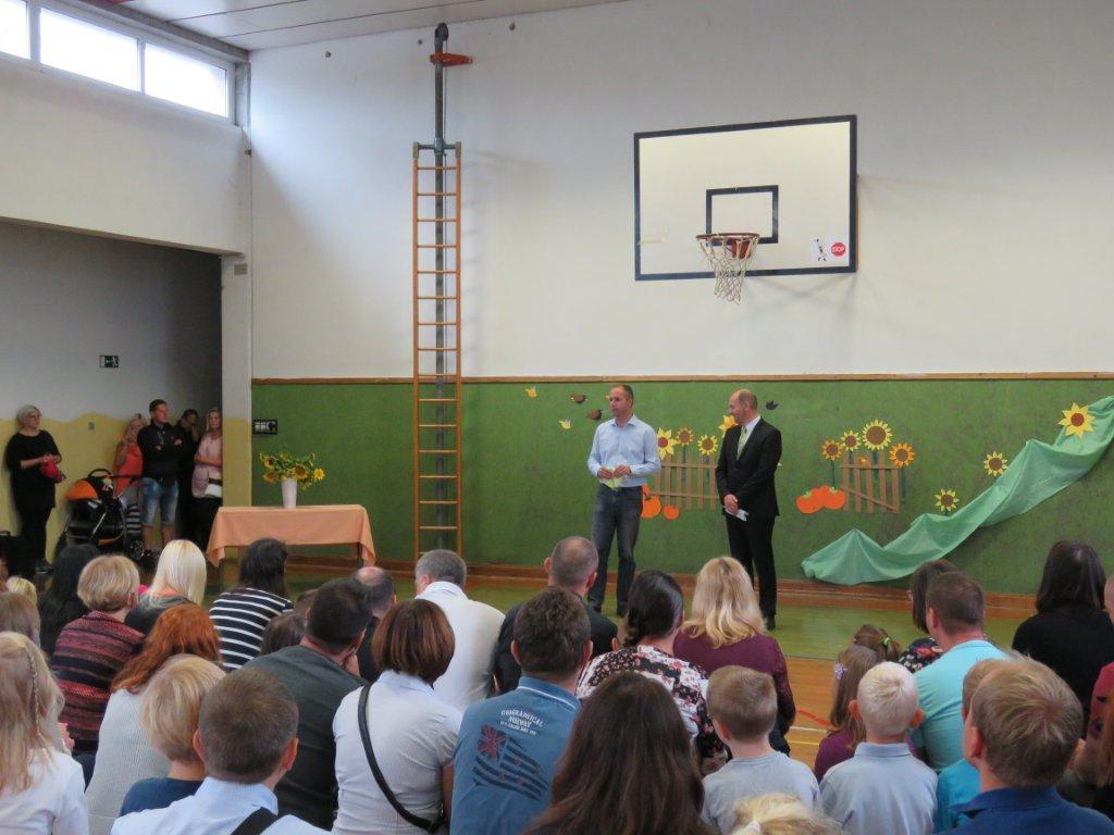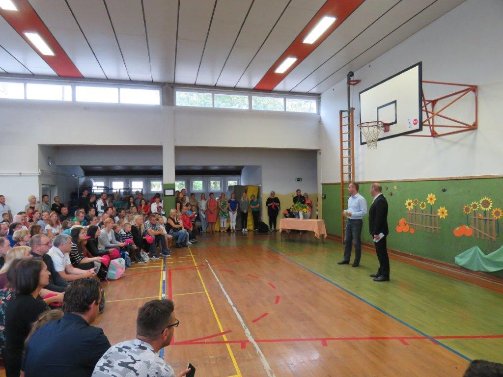 Župan dr. marko Soršak je vsem prvošolčkom v občini podaril varovalne rutice in ob tem povedal: »Ko sem bil otrok sem se veselil počitnic, sedaj, ko sem župan, sem vesel, da imam čast, da na prvi šolski dan pozdravim prvošolčke in ostale učence, ki se podajajo na učno pot v naši občini. Trudimo se, da tesno sodelujemo s šolami in vrtci v naši občini. Zavedam se, da je izobrazba, ki jo prejmejo naši najmlajši občanke in občani temelj za nadaljnje šolanje, zato je skrb, da imajo odlične pogoje za osnovnošolsko šolanje, zame najpomembnejša. Vsem, ki so danes prvič prestopili šolski prag želim, da imajo na ta dan najlepše spomine, da prejmejo najboljše znanje in, da ob tem navežejo prijateljske vezi, ki trajajo celo življenje. Prav tako želim odlično novo šolsko leto vsem večjim šolarjem.«