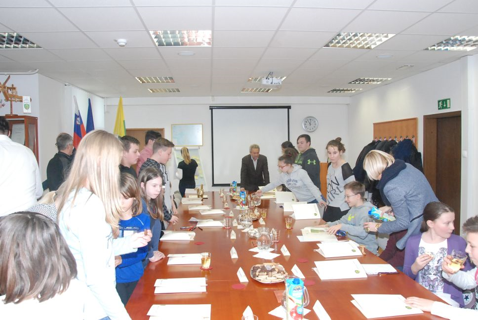 Po končani seji otroškega občinskega sveta so se mladi svetniki fotografirali z županom in si ogledali prostore Občine, se seznanili z zaposlenimi in njihovimi delovnimi področji ter sproščeno poklepetali ob sladkem prigrizku.