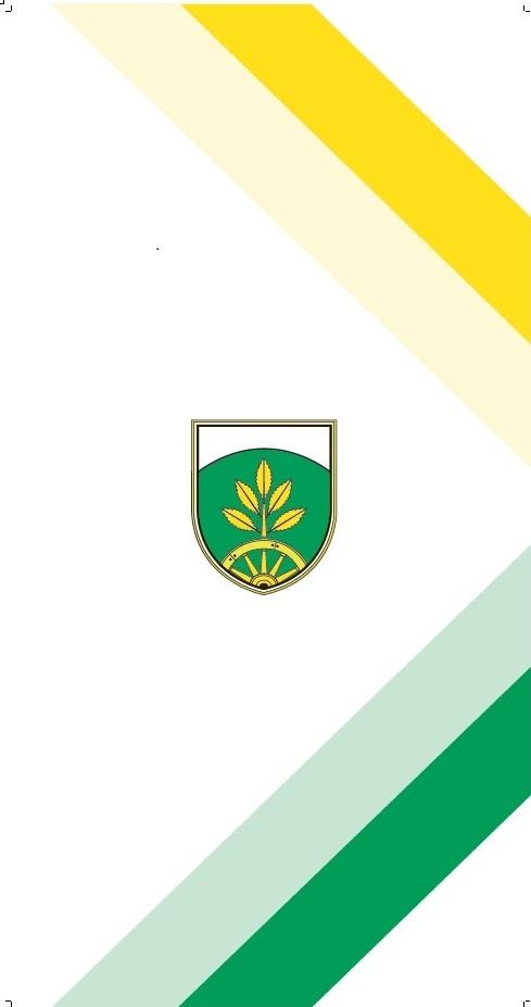 Opis: Zastava Občine je pravokotne oblike, razmerje njene višine »V« proti dolžini« L je tri proti ena oziroma: V:L=3:1.