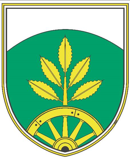 Zunanji izgled: v dno zelenega hriba na srebrnem ščitu je potopljeno zlato kolo voza; nad njim je stilizirano v zlatu rastoče drevesce pravega kostanja s petimi listi, rastočimi v piramido.