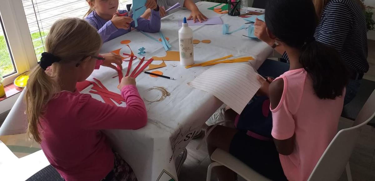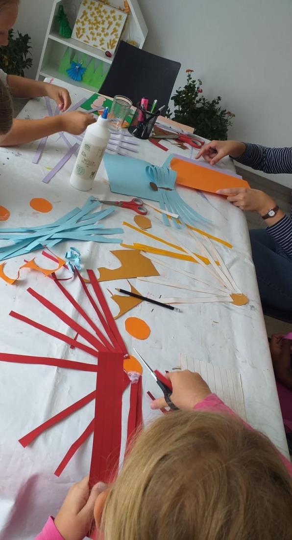 Potrebujete samo papir, škarje in lepilo, ter seveda tako kot vedno idejo. Na naših fotografijah lahko vidite, kaj smo mi ustvarjali z otroci, mentorica Neža jim je bila seveda samo v pomoč in