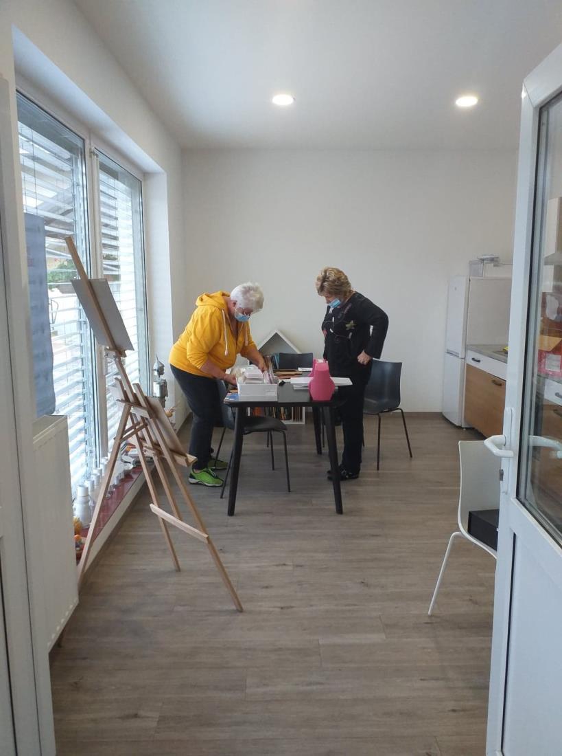 Delavnica je obsegala risanje in izdelovanje vizitk. S posebnim strojem za izrezovanje in izdelavo vizitk smo se lotili dela. Potrebovali smo barvni šeleshamer, malo tanjši papir za podloge in lepilo. Ostale umetnine smo izdelali z različnimi modelčki, s katerimi smo naredili krasne vizitke, ki bodo služile za razna praznovanja in novo leto za poslovne partnerje. Delo je bilo pestro, saj je bilo veliko luknjičastih modelčkov, bodisi za razrezovanje ali tiskanje.
