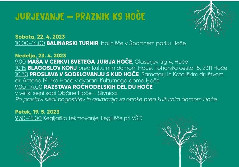Vabljeni 𝘃 𝗻𝗲𝗱𝗲𝗹𝗷𝗼, 𝟮𝟯.𝟰.𝟮𝟬𝟮𝟯, od 10.00 ure naprej na pestro dogajanje pred kulturnim domom Hoče. Po sveti maši ob 10.15 uri bo potekal tradicionalni blagoslov konj in konjenikov.