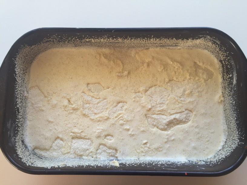 Preliv polijemo v pekač. Pekač postavimo v vročo pečico in pečemo 40 minut.