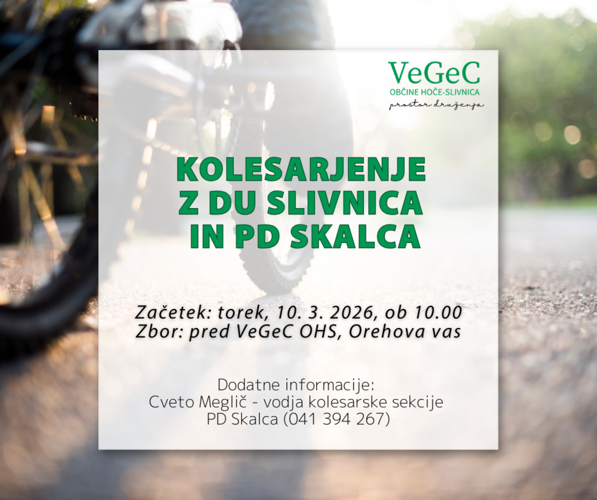 Vabimo vas, da se nam priružite v torek, 10.3.2026 ob 10.00 uri na zbirnem mestu pred Večgeneracijskim centrom VeGeC OHS Orehova vas.