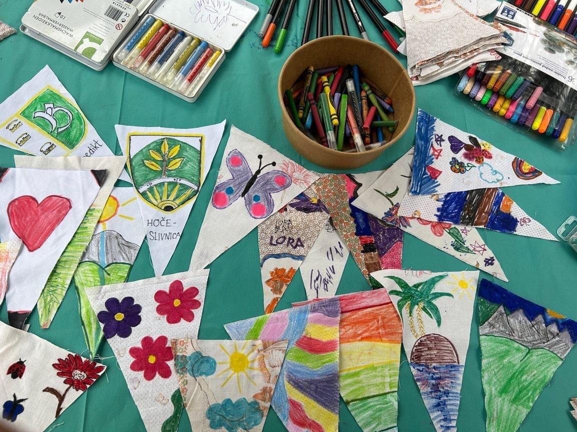 V soboto, 25. marca 2023, smo tudi našo tržnico želeli posvetiti mamam za njihov dan, zato smo povabili starše in otroke na otroške delavnice. Izdelovali bi zastavice za verigo prijateljstva – sestavili bi najdaljšo verigo srčnih želja, miru in prijateljstva. Ideja o zastavicah je nastala v sklopu Evropskega tedna zmanjševanja odpadkov – trajnostni tekstil – novembra 2022 in je s pomočjo Škratove vile prerasla v večgeneracijski projekt mednarodnih dimenzij. Veriga bo izobešena na meji med Slovenijo in Avstrijo.