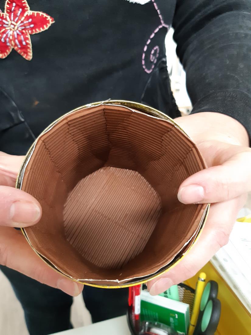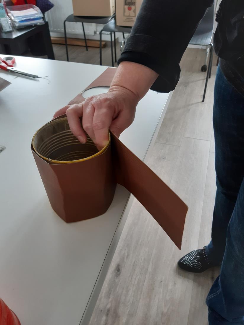 Na aluminijasti loček z pištolo za lepljenje pritrdimo po želji orehove lušine. Priporočamo, da izbirate različne velikosti saj tako izdelek postane bolj pester in prikupen za pogled.