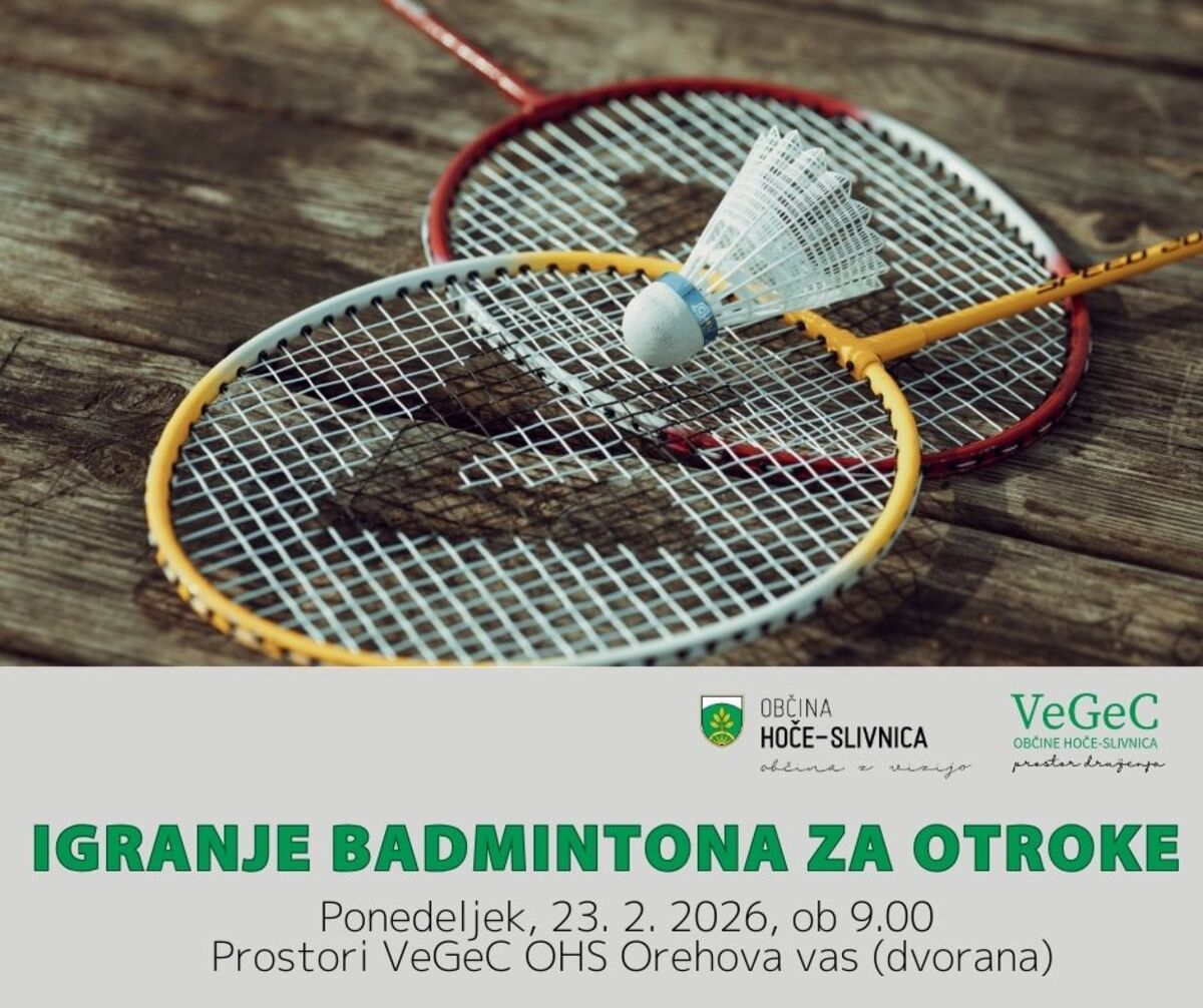 V času zimskih počitnic smo za vas pripravili medgeneracijske aktivnosti in vas vabimo, da se nam pridružite pri dejavnosti Igranje badmintona za otroke, ki bo v ponedeljek, 23. 2. 2026, ob 9.00 v centru VeGeC Orehova vas.