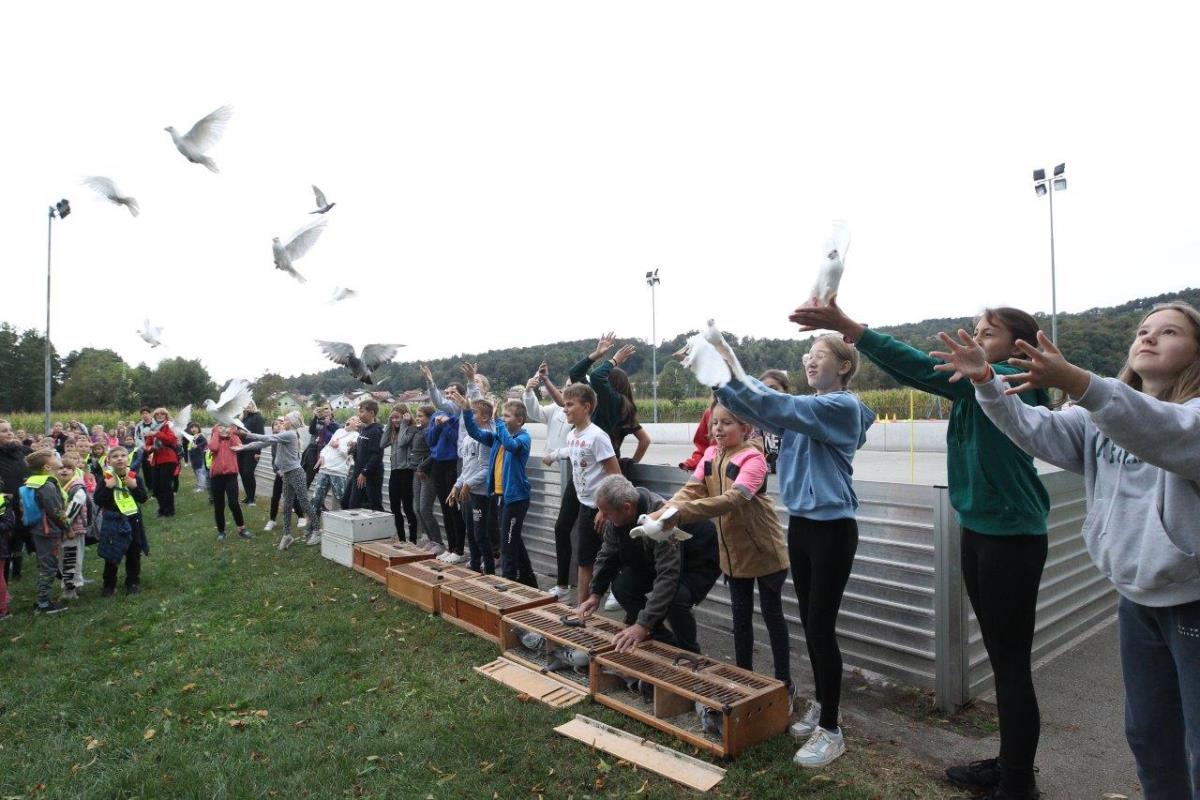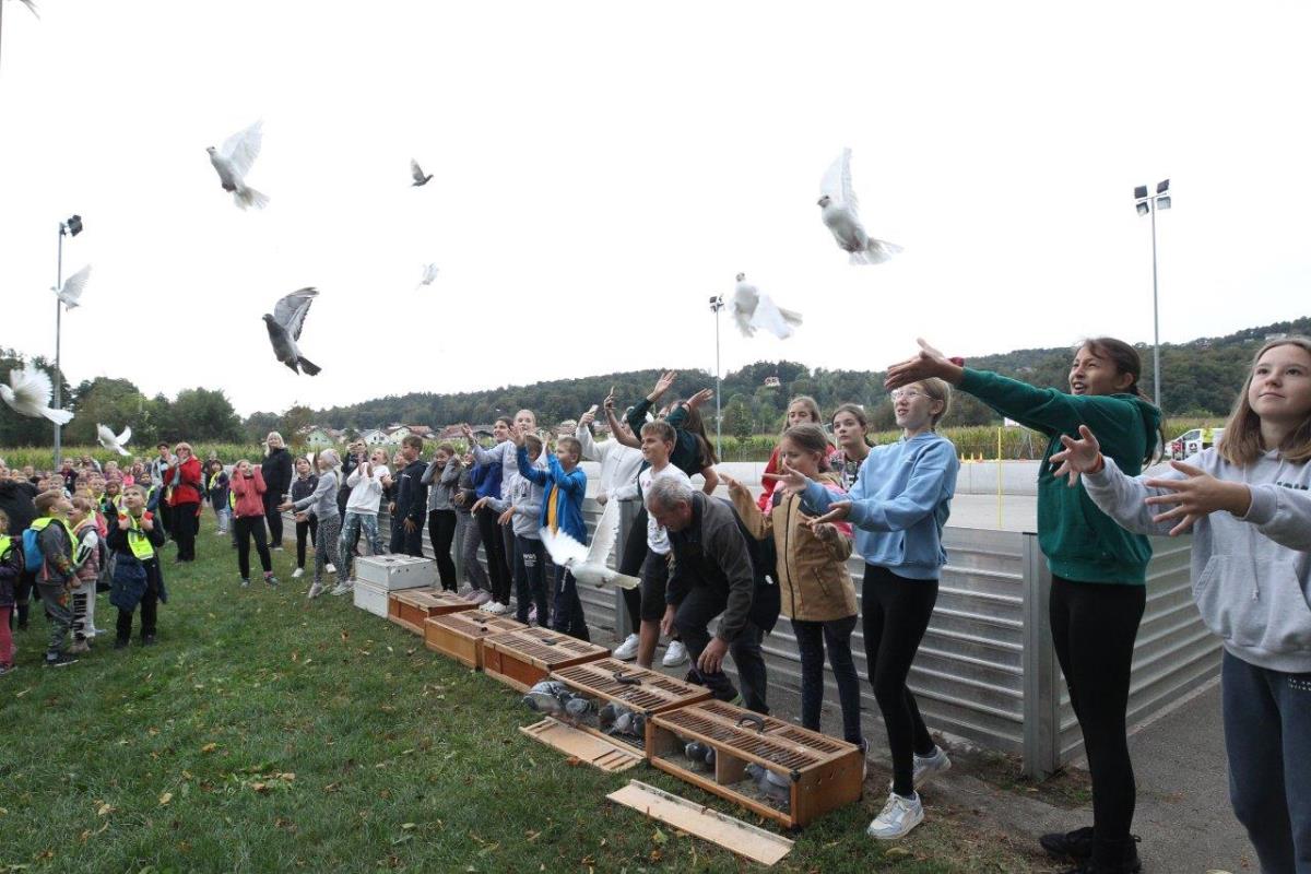 Tudi mini olimpijada se začenja tako, kot se to zgodi na pravi olimpijadi: z olimpijsko zastavo, himno, pozdravom in baklo. Za piko na i pa so poskrbeli ubrani golobi, ki so jih skupaj z otroci izpustili člani Kluba gojiteljev športnih golobov pismonoš; po opravljeni poti se bodo – in so se – golobčki vrnili k svojim lastnikom. Otroci pa so za ogrevanje izvedli Foxijev ples.