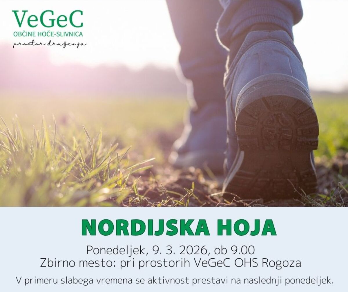 Vabimo vas, da se nam pridružite pri nordijski hoji v ponedeljek, 9. marca 2026, ob 9. uri.