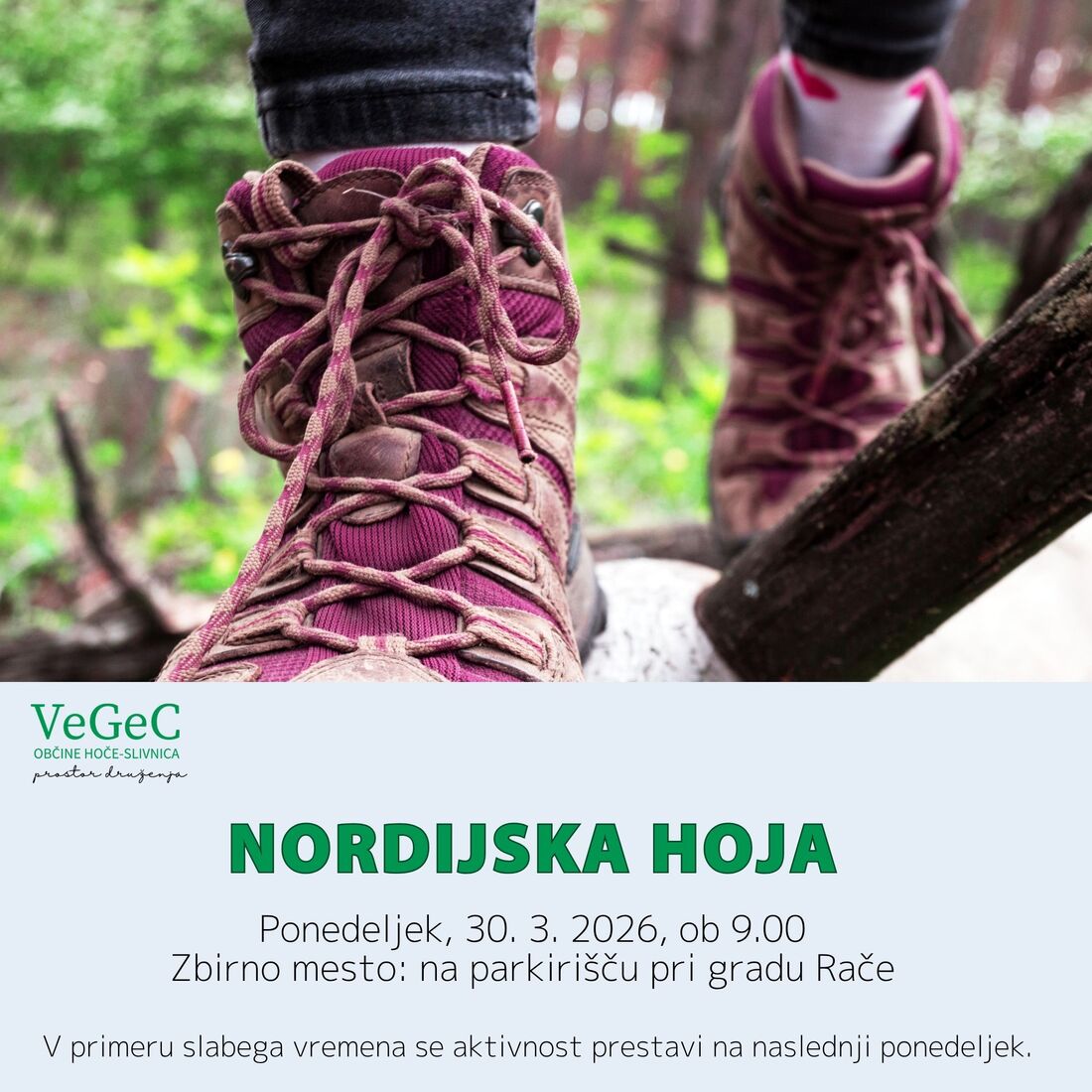 Vabimo vas, da se nam pridružite pri nordijski hoji v ponedeljek, 30.3 2026, ob 9.00. uri.