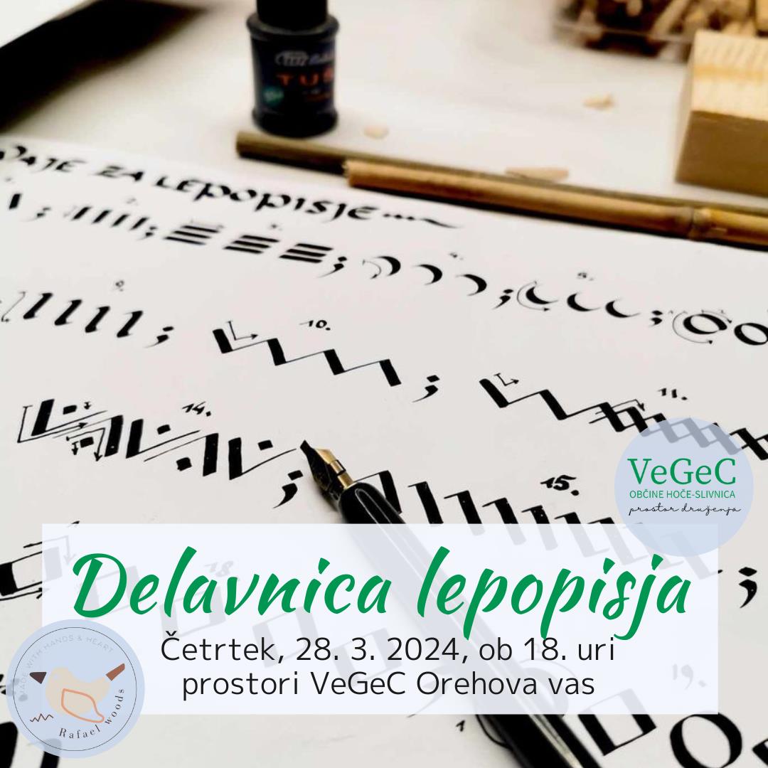 Vabljeni, da se nam pridružite na delavnici "OSNOVE LEPOPISJA", ki bo potekala v četrtek, 28. marca 2024 ob 18.00 na lokaciji VeGeC OHS Orehova vas.