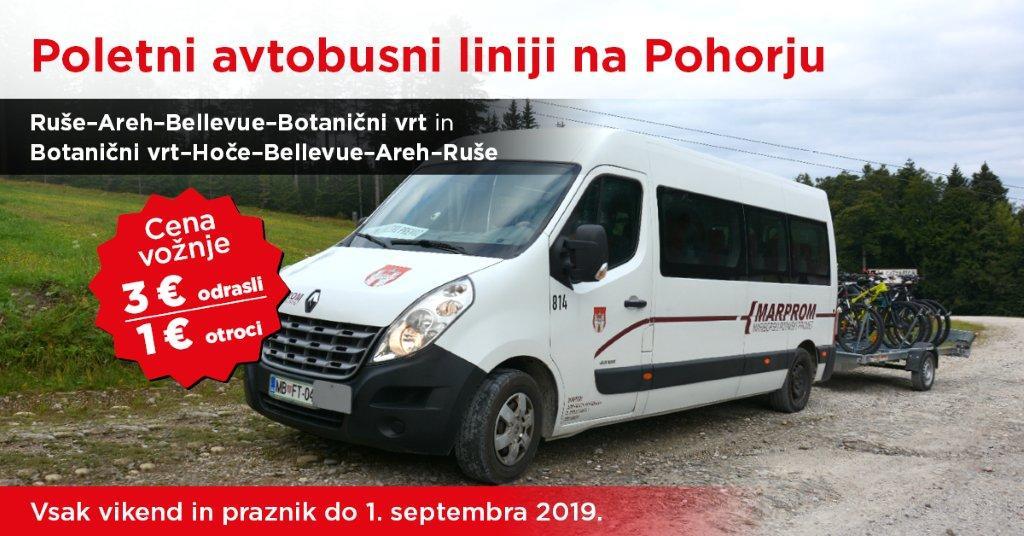 Od 18. maja do 1. septembra 2019 bosta na območju Pohorja ob vikendih in praznikih na razpolago dve posebni avtobusni liniji: ena na relaciji Ruše–Areh–Bellevue–Botanični vrt in druga Botanični vrt–Hoče–Bellevue–Areh–Ruše.