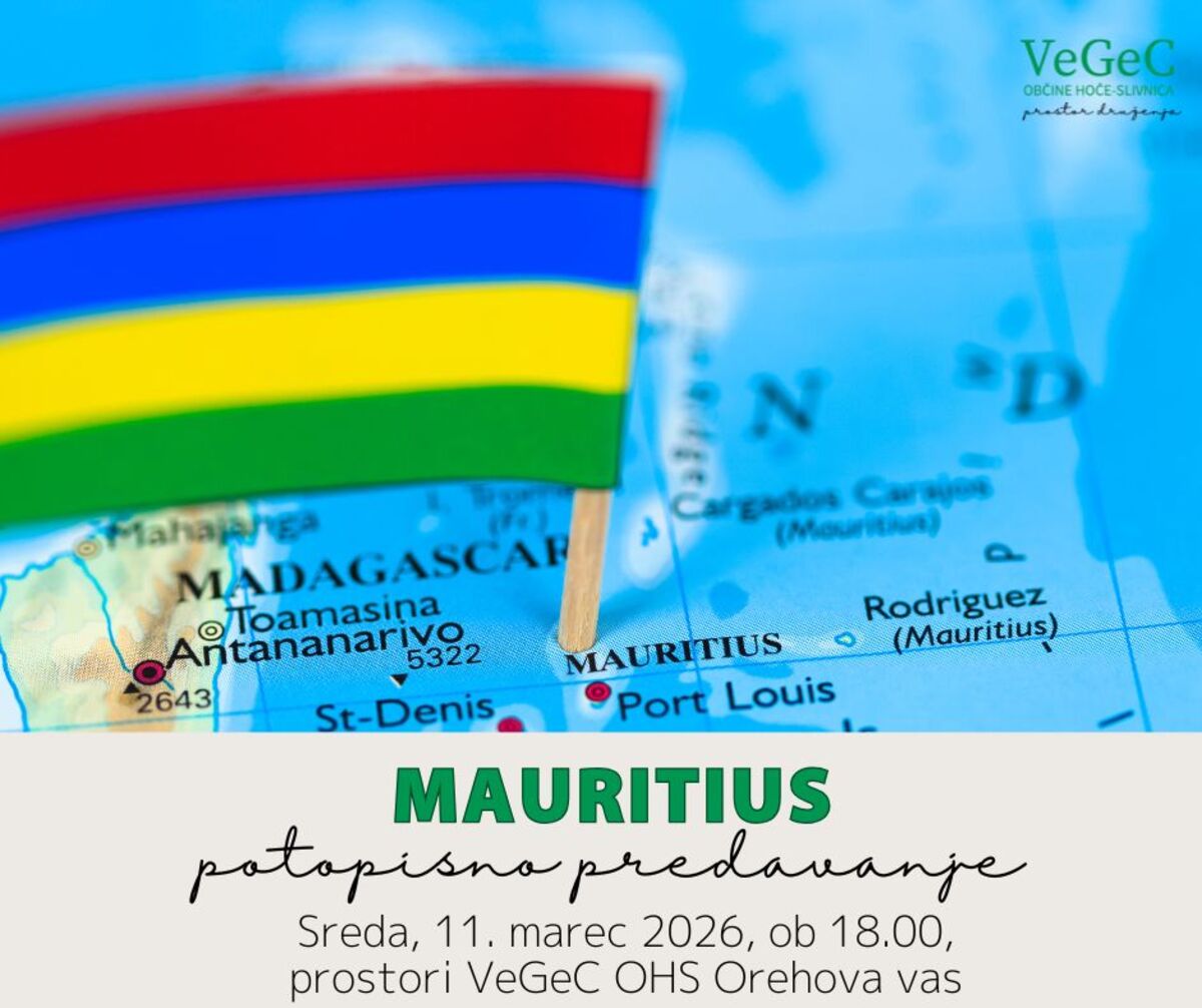 Vabimo vas na potopisno predavanje Mauritius, ki bo v sredo, 11.3.2026 ob 18.00 uri v prostorih centra VeGeC OHS Orehova vas.
