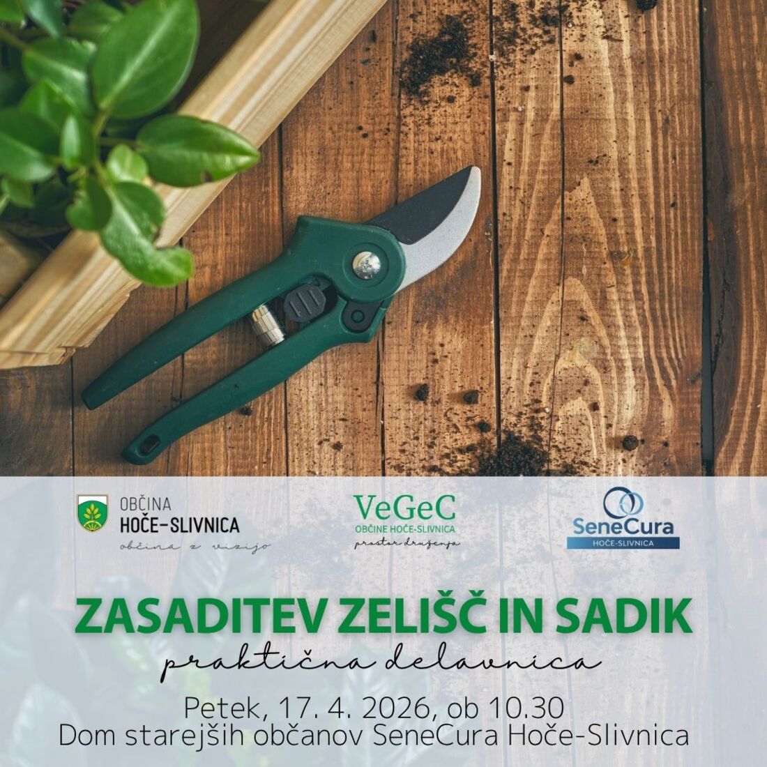 V sodelovanju z Domom za starejše občane SeneCura Hoče-Slivnica bomo skupaj s stanovalci doma posadili zelišča in prispevali k lepšemu, prijaznejšemu in bolj zelenemu prostoru druženja.