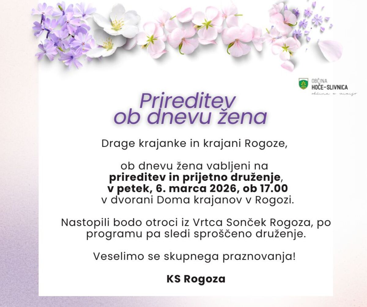 ob prihajajočem dnevu žena prisrčno vabljeni na prireditev in prijetno druženje, ki bo v petek, 6. marca 2026, ob 17.00