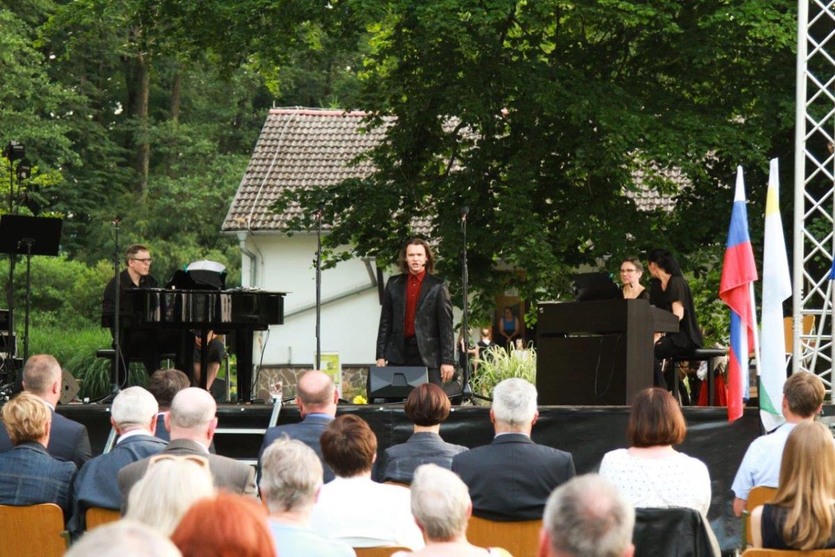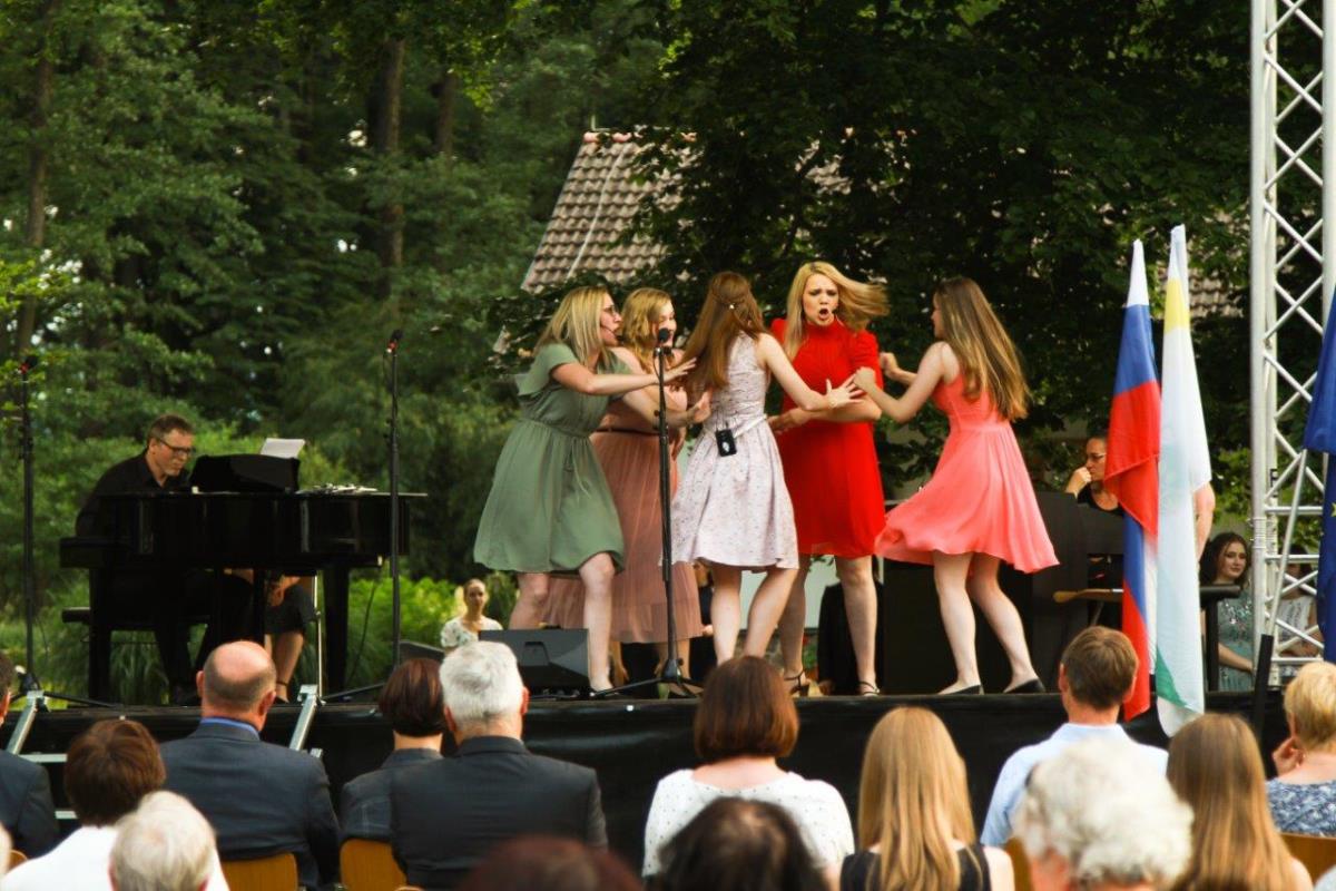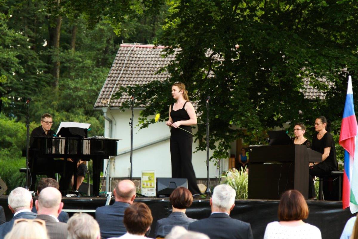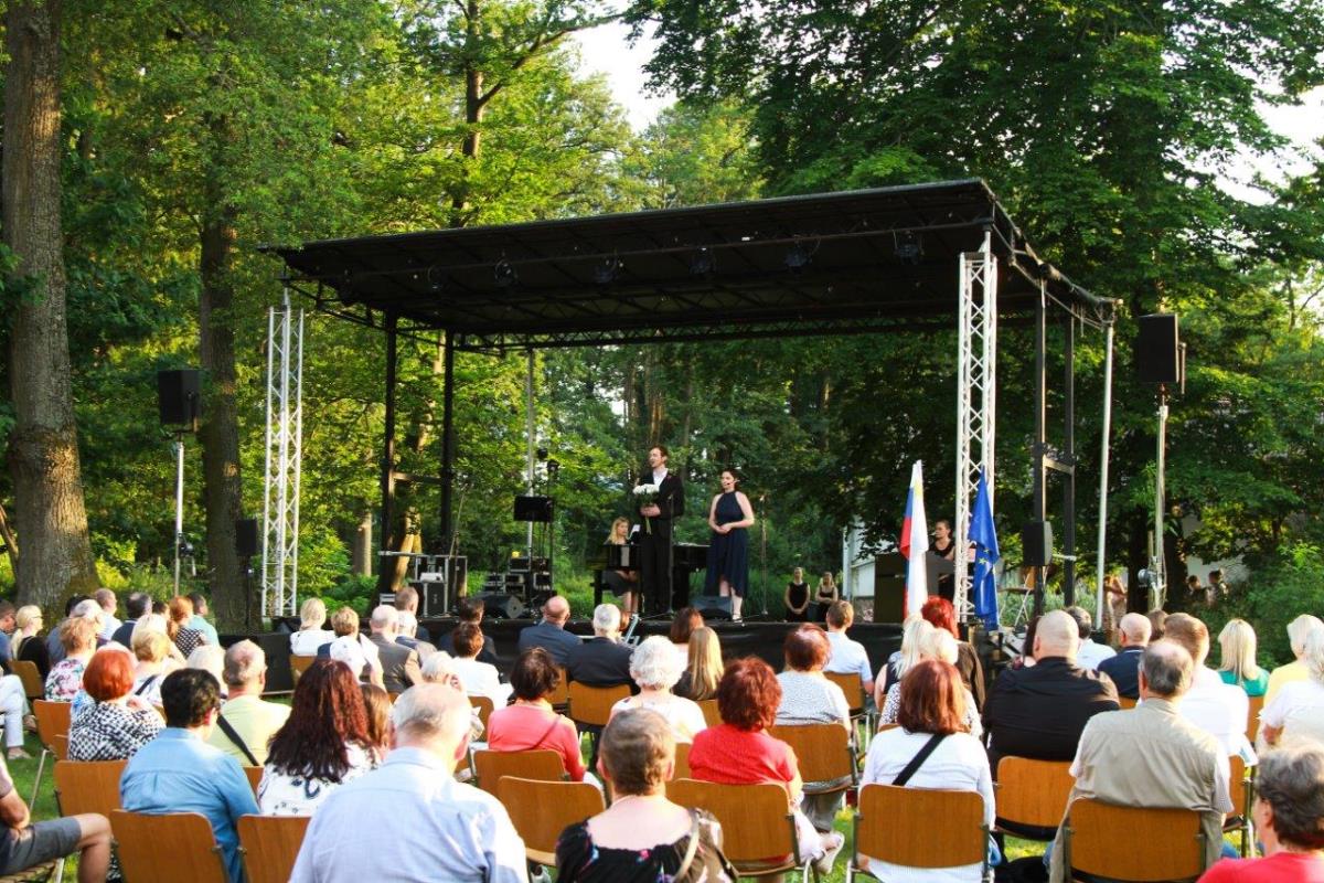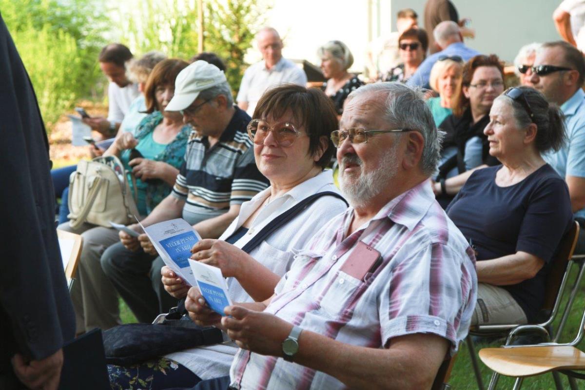 V zahajajočem soncu 17. junija smo se v velikem številu zbrali sredi zelenega in cvetočega Botaničnega vrta. Mnogi smo se videli po dolgem času, saj je bil to prvi večji dogodek po ukrepih zaradi pandemije. Tudi napovedovalec večera ni mogel mimo tega: »Ta Večer pesmi in arij v Botaničnem vrtu povezuje glasbeno zgodbo, ko nas po zelo dolgem času spet pozdravijo prijatelji, ko se v domače loge vrnejo ptice, ko se razcveti ljubezen in ko na vrtu zacvetijo najlepše rože.«