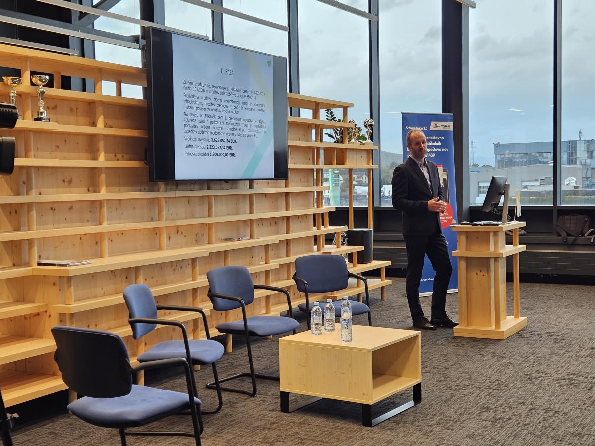 Tako so bile predstavljene dobre prakse Občine Hoče-Slivnica pri pridobivanju EU sredstev za ureditev nujno potrebne infrastrukture. Rekonstrukcijo Miklavške ceste - po fazah - za potrebe podjetij v Poslovni coni Hoče je predstavil dr. Marko Soršak, župan Občine Hoče - Slivnica.