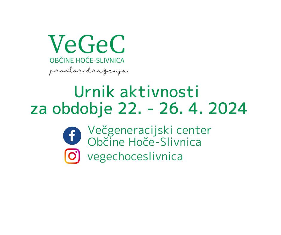 Urnik dejavnosti VeGeC za obdobje od 22. do 26. 4. 2024