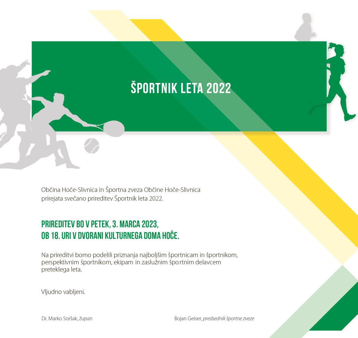 Vabilo na prireditev ŠPORTNIK LETA 2022