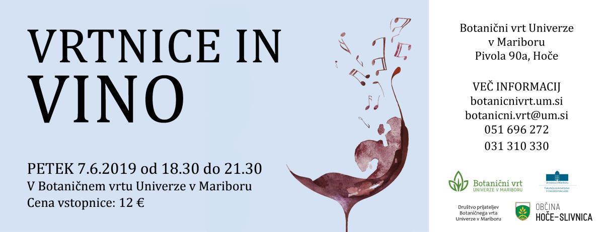 v petek, 7. 6. ob 18.30 uri, Vrtnice in vino, glasba, kulinarika in degustacije vin v rozariju botaničnega vrta
